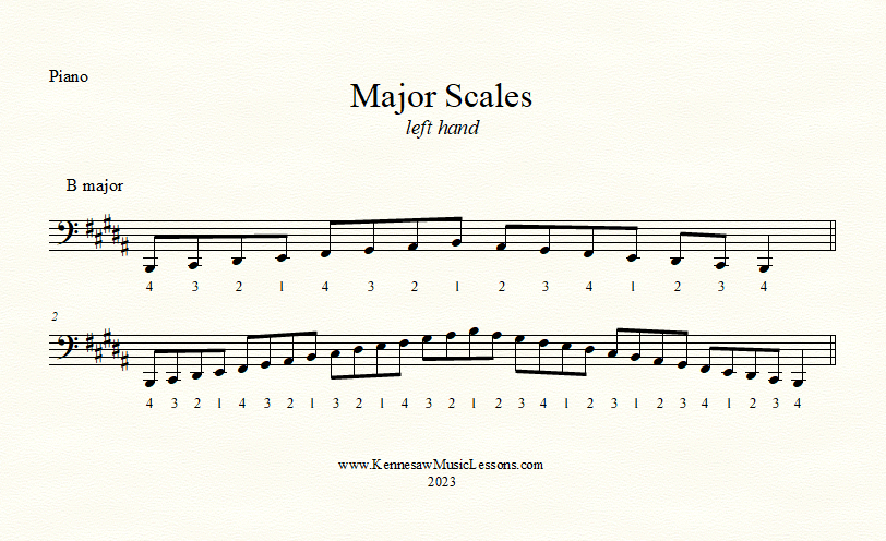 B major scale - left hand